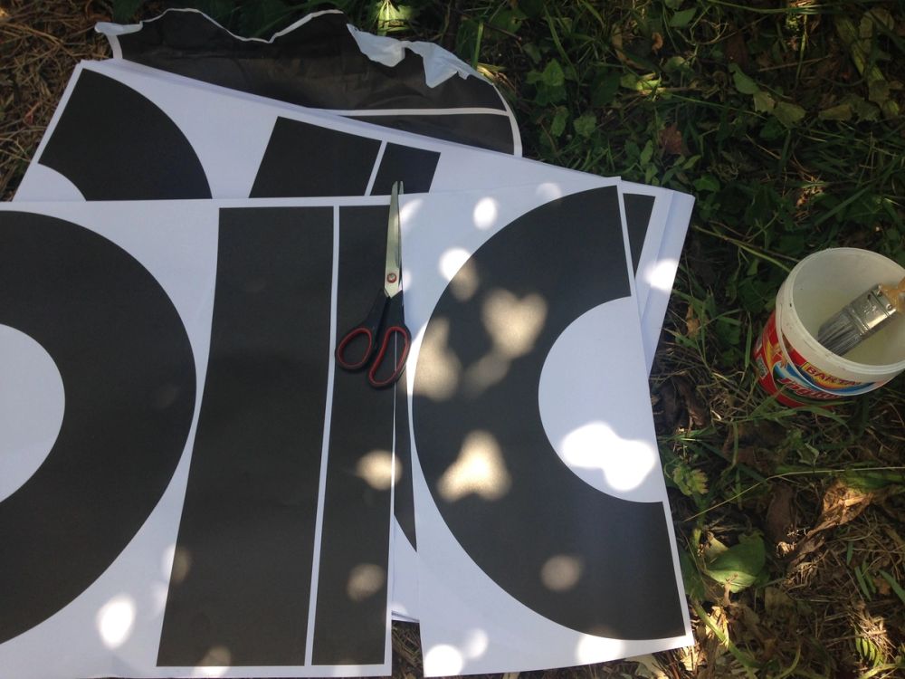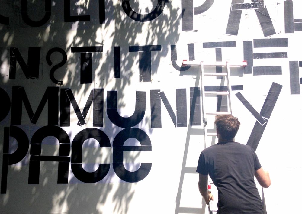 Billboard with changing messages, using a DIY cut and paste typeface, 2017